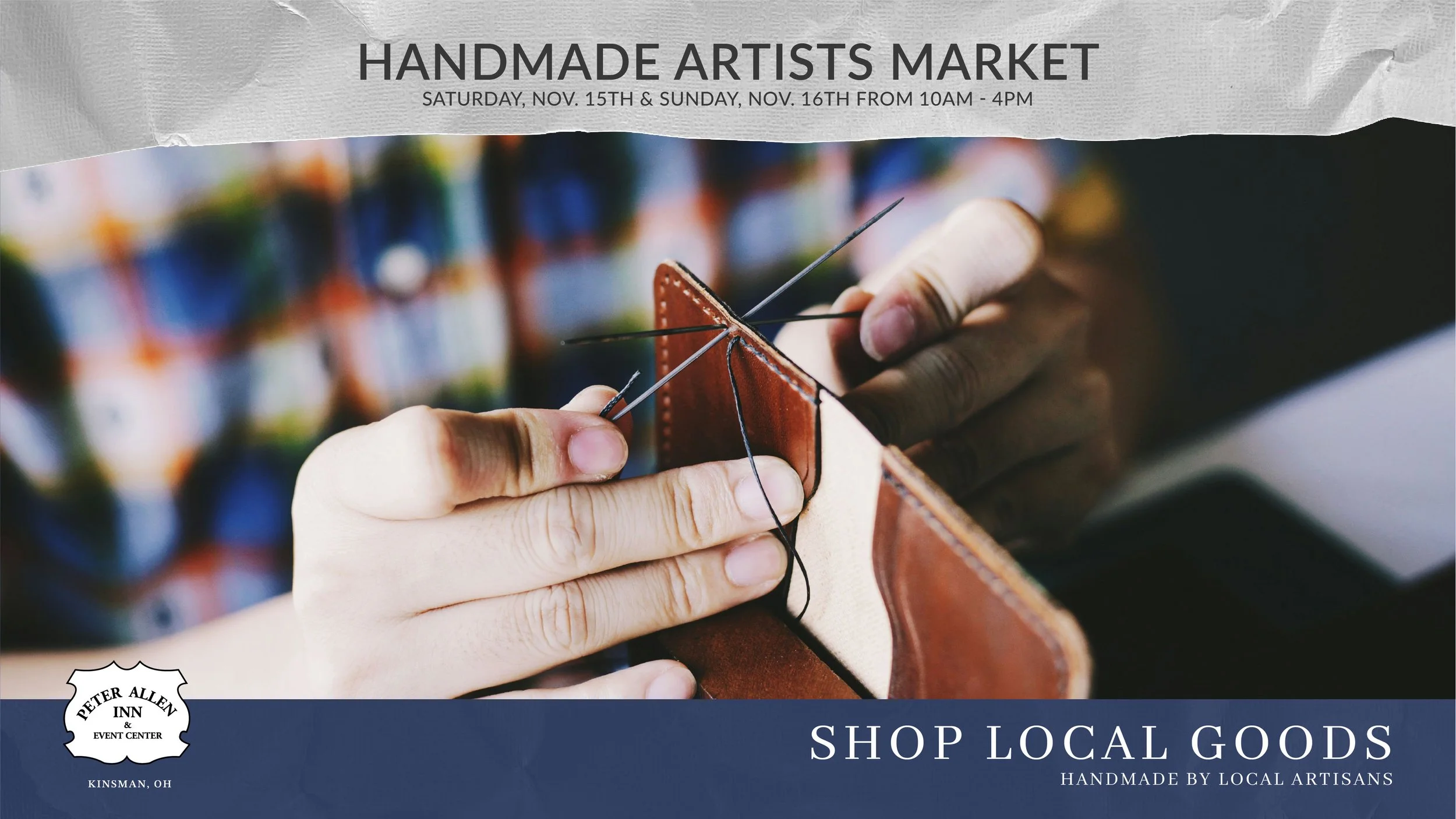 Join us on November 15–16, from 10AM – 4PM, for a festive fall weekend celebrating local creativity and craftsmanship! Our Handmade Artists Market will feature a wide variety of talented local artists showcasing and selling their handmade wares—perfect for holiday shopping or treating yourself to something unique.